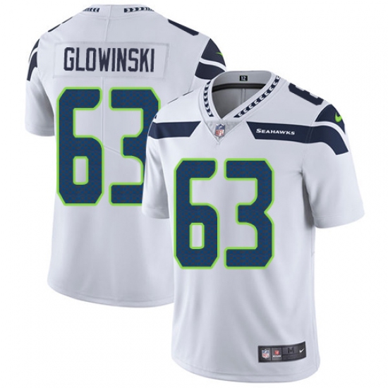 Home>NFL>Seattle Seahawks>Mark Glowinski>Men's Nike Seattle Seahawks #63 Mark Glowinski White Vapor Untouchable Limited Player NFL Jersey