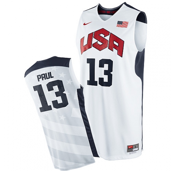 Men's Nike Team USA #13 Chris Paul Swingman White 2012 Olympics Basketball Jersey