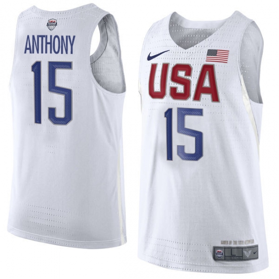 Home>NBA>Team USA>Carmelo Anthony>Men's Nike Team USA #15 Carmelo Anthony Swingman White 2016 Olympic Basketball Jersey