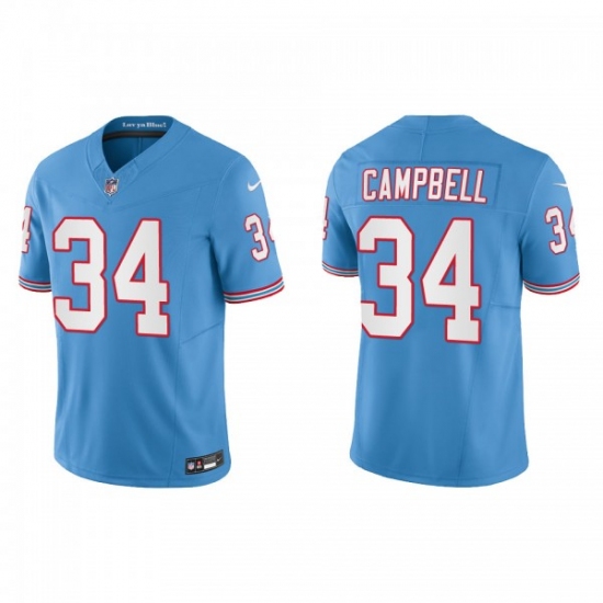 >Men's Nike Tennessee Titans #34 Earl Campbell Light Blue 2023 F.U.S.E. Vapor Limited Throwback Stitched Football Jersey