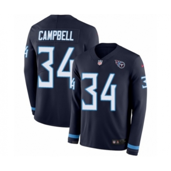 Men's Nike Tennessee Titans #34 Earl Campbell Limited Navy Blue Therma Long Sleeve NFL Jersey