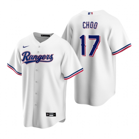 >Men's Nike Texas Rangers #17 Shin-Soo Choo White Home Stitched Baseball Jersey