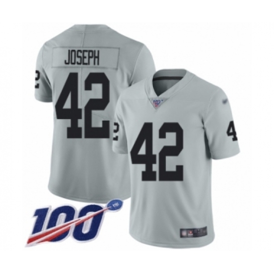 >Men's Oakland Raiders #42 Karl Joseph Limited Silver Inverted Legend 100th Season Football Jersey