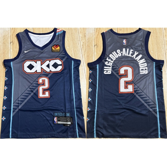 Men's Oklahoma City Thunder #2 Shai Gilgeous-Alexander Navy Stitched Basketball Jersey