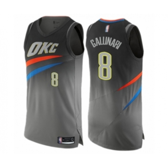 >Men's Oklahoma City Thunder #8 Danilo Gallinari Authentic Gray Basketball Jersey - City Edition