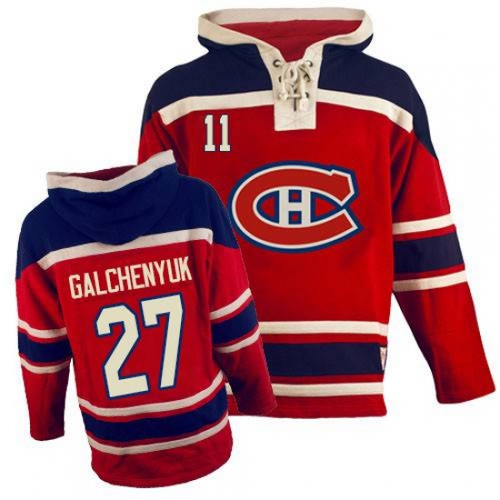 Men's Old Time Hockey Montreal Canadiens #27 Alex Galchenyuk Premier Red Sawyer Hooded Sweatshirt NHL Jersey