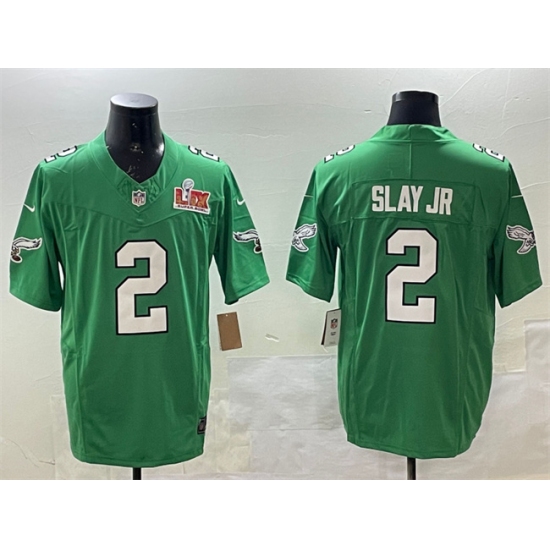 Men's Philadelphia Eagles #2 Darius Slay JR Green 2025 Eagles Logo Super Bowl LIX New F.U.S.E. Vapor Limited Football Stitched Jersey