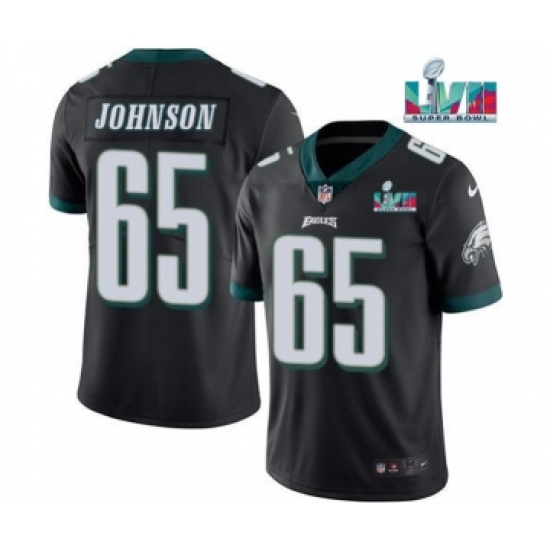 >Men's Philadelphia Eagles #65 Lane Johnson Black Super Bowl LVII Patch Vapor Untouchable Limited Stitched Jersey