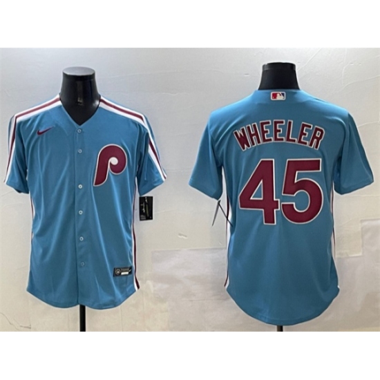 >Men's Philadelphia Phillies #45 Zack Wheeler Blue Cool Base Stitched Jersey
