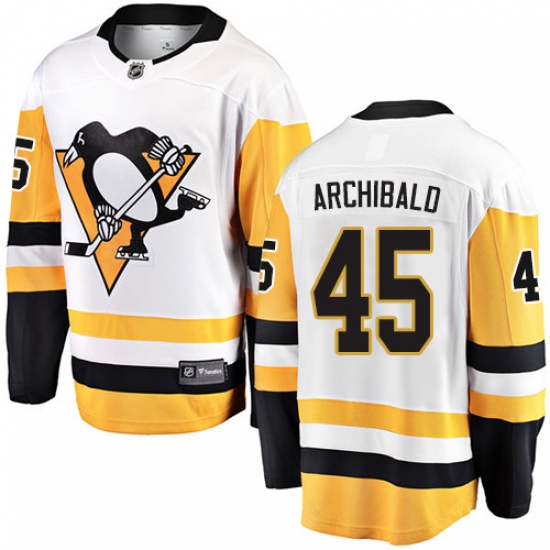 Men's Pittsburgh Penguins #45 Josh Archibald Fanatics Branded White Away Breakaway NHL Jersey