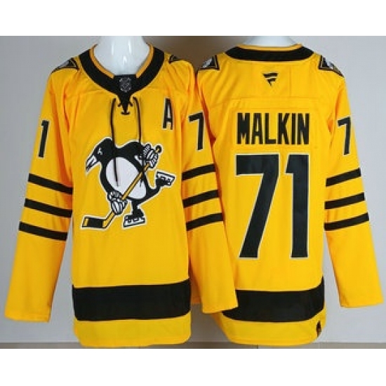 Men's Pittsburgh Penguins #71 Evgeni Malkin Yellow Alternate Authentic Jersey