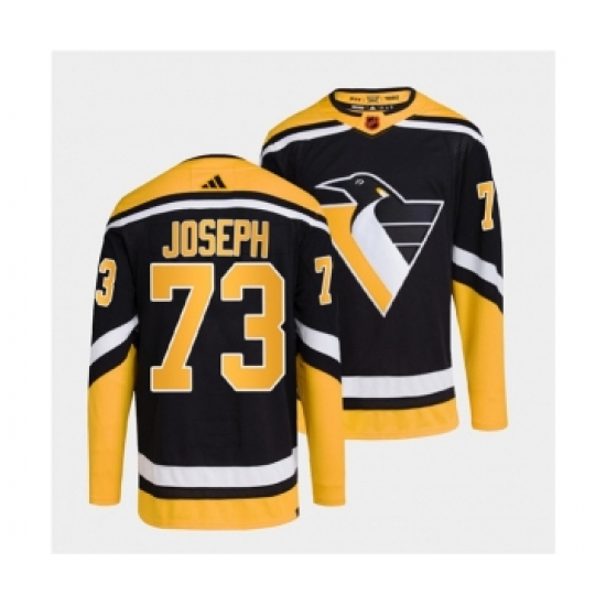 >Men's Pittsburgh Penguins #73 Pierre-Olivier Joseph Black 2022 Reverse Retro Stitched Jersey