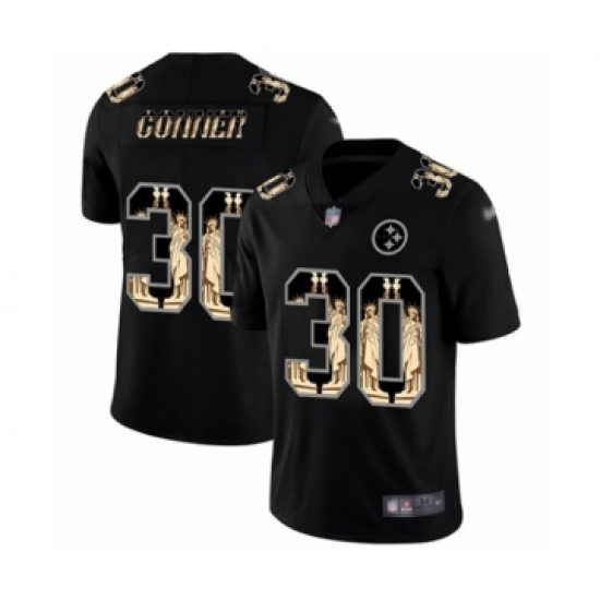 >Men's Pittsburgh Steelers #30 James Conner Limited Black Statue of Liberty Football Jersey