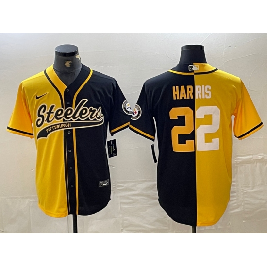 Men's Pittsburgh Steelers #32 Franco Harris Yellow Black Split With Cool Base Stitched Baseball Jersey