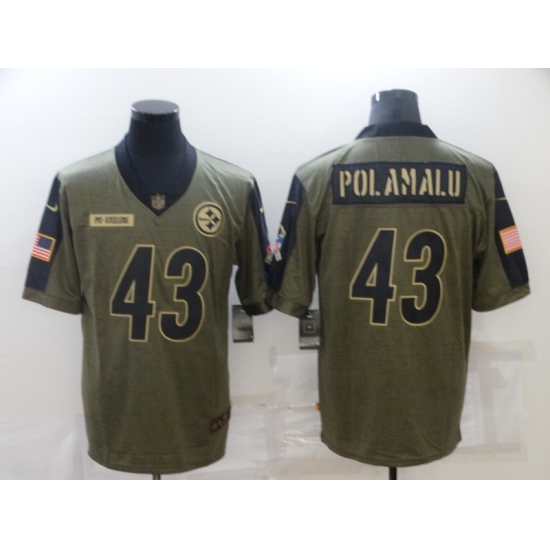 Men's Pittsburgh Steelers #43 Troy Polamalu Nike Olive 2021 Salute To Service Limited Player Jersey