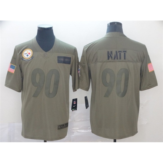 >Men's Pittsburgh Steelers #90 T. J. Watt 2019 Camo Salute To Service Limited Stitched Jersey