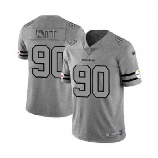 Men's Pittsburgh Steelers #90 T. J. Watt Limited Gray Team Logo Gridiron Football Jersey