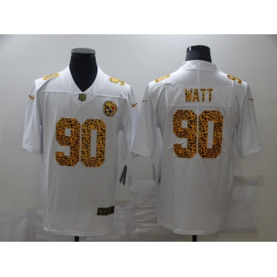 Men's Pittsburgh Steelers #90 T. J. Watt White Nike Leopard Print Limited Jersey