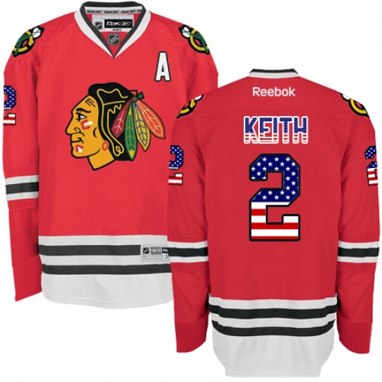 Home>NHL>Chicago Blackhawks>Duncan Keith>Men's Reebok Chicago Blackhawks #2 Duncan Keith Authentic Red USA Flag Fashion NHL Jersey