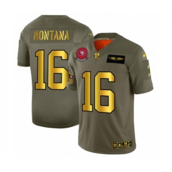 Men's San Francisco 49ers #16 Joe Montana Limited Olive Gold 2019 Salute to Service Football Jersey