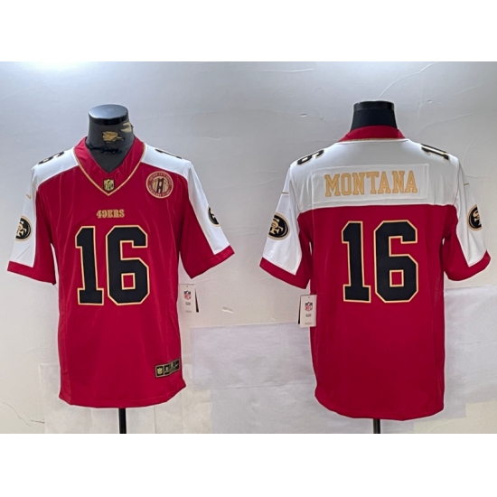 Men's San Francisco 49ers #16 Joe Montana Red Vapor Untouchable Limited Stitched 2024 Super Bowl LVIII Jersey