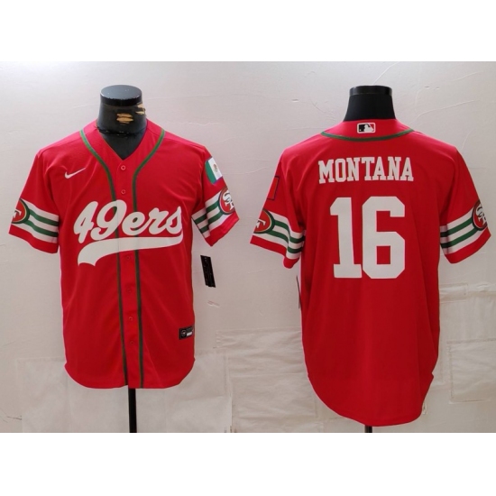 Men's San Francisco 49ers #16 Joe Montana Red Mexico Cool Base Stitched Baseball Jersey