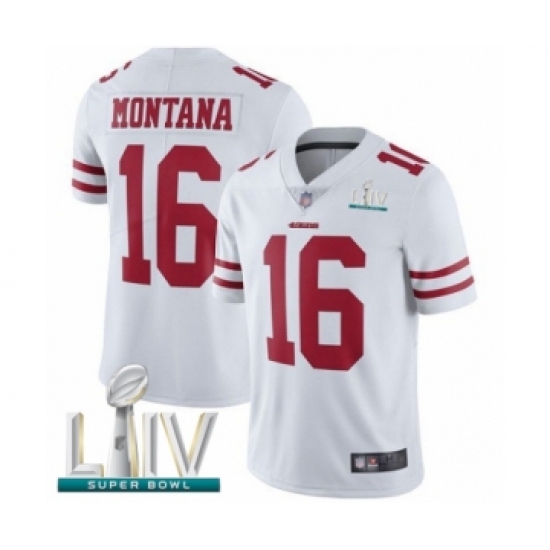 Men's San Francisco 49ers #16 Joe Montana White Vapor Untouchable Limited Player Super Bowl LIV Bound Football Jersey