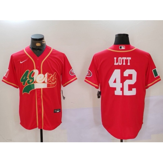 Men's San Francisco 49ers #42 Ronnie Lott Red Mexico Cool Base Stitched Baseball Jersey