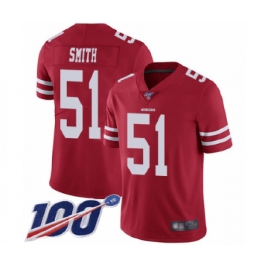 Men's San Francisco 49ers #51 Malcolm Smith Red Team Color Vapor Untouchable Limited Player 100th Season Football Jersey