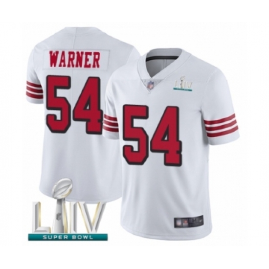 >Men's San Francisco 49ers #54 Fred Warner Limited White Rush Vapor Untouchable Super Bowl LIV Bound Football Jersey