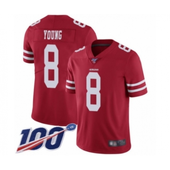 Men's San Francisco 49ers #8 Steve Young Red Team Color Vapor Untouchable Limited Player 100th Season Football Jersey