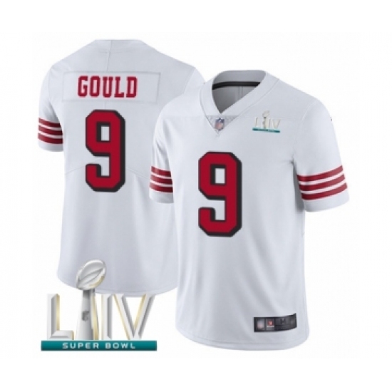 >Men's San Francisco 49ers #9 Robbie Gould Limited White Rush Vapor Untouchable Super Bowl LIV Bound Football Jersey