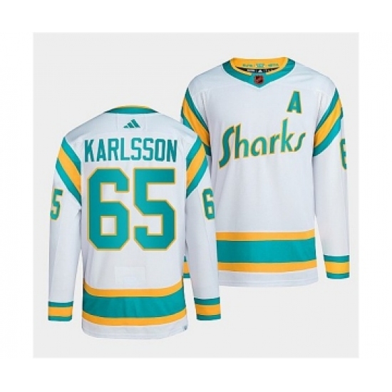 Men's San Jose Sharks #65 Erik Karlsson White 2022 Reverse Retro Stitched Jersey