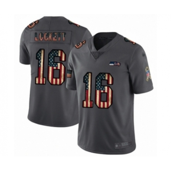 Men's Seattle Seahawks #16 Tyler Lockett Carbon Black Retro Flag Limited Football Jersey