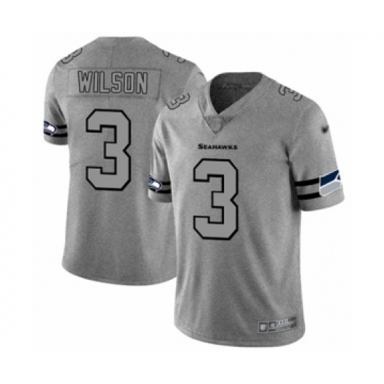 Men's Seattle Seahawks #3 Russell Wilson Limited Gray Team Logo Gridiron Football Jersey