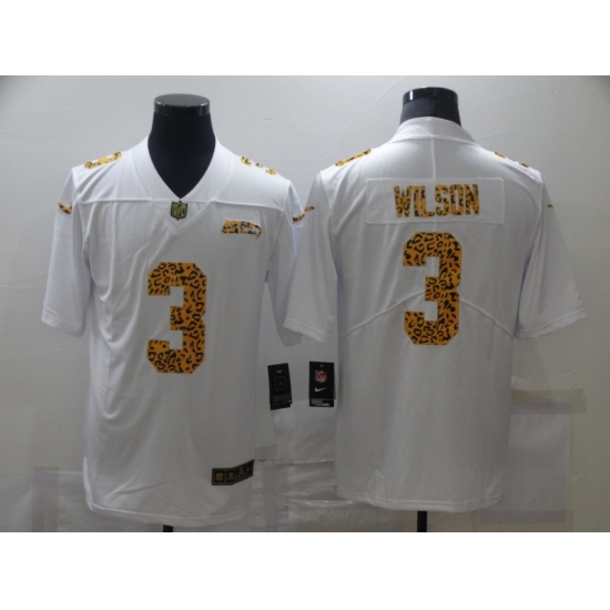 >Men's Seattle Seahawks #3 Russell Wilson White Nike Leopard Print Limited Jersey