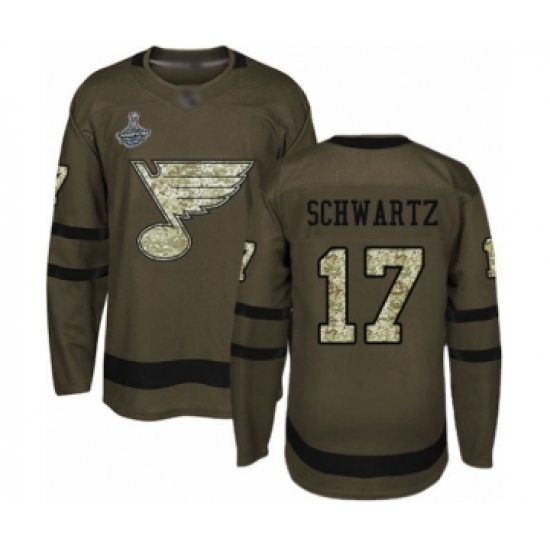 >Men's St. Louis Blues #17 Jaden Schwartz Authentic Green Salute to Service 2019 Stanley Cup Champions Hockey Jersey
