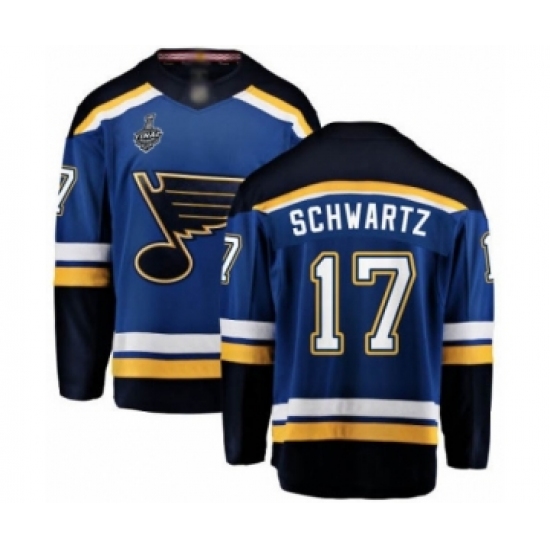 >Men's St. Louis Blues #17 Jaden Schwartz Fanatics Branded Royal Blue Home Breakaway 2019 Stanley Cup Final Bound Hockey Jersey