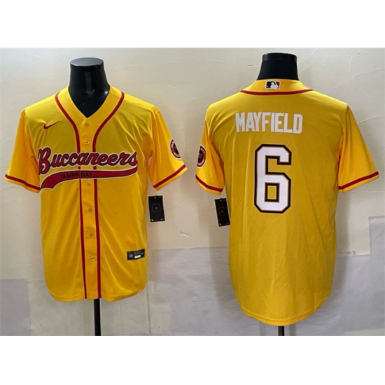 >Men's Tampa Bay Buccaneers #6 Baker Mayfield Gold Cool Base Stitched Baseball Jersey