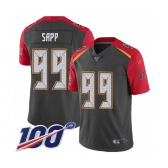 >Men's Tampa Bay Buccaneers #99 Warren Sapp Limited Gray Inverted Legend 100th Season Football Jersey