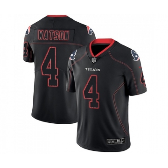 >Men's Texans #4 Deshaun Watson NFL 2018 Lights Out Black Color Rush Limited Jersey