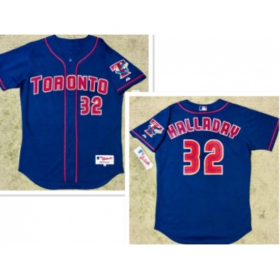 Men's Toronto Blue Jays #32 Roy Halladay Alternate Blue MLB Jersey