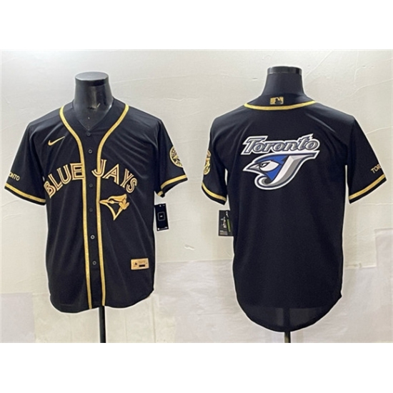 Men's Toronto Blue Jays Team Big Logo Black Gold Cool Base Stitched Jersey