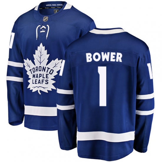 Home>NHL>Toronto Maple Leafs>Johnny Bower>Men's Toronto Maple Leafs #1 Johnny Bower Fanatics Branded Royal Blue Home Breakaway NHL Jersey
