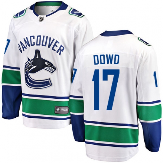 Men's Vancouver Canucks #17 Nic Dowd Fanatics Branded White Away Breakaway NHL Jersey