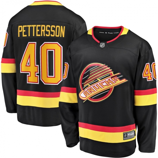 >Men's Vancouver Canucks #40 Elias Pettersson Fanatics Branded Black 2019-20 Flying Skate Premier Breakaway Player Jersey