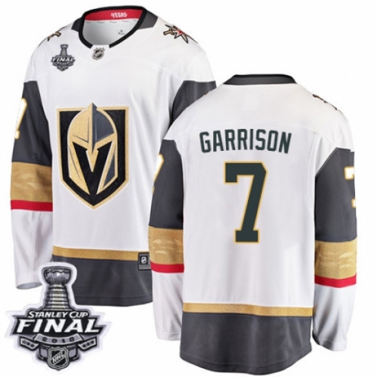 Men's Vegas Golden Knights #7 Jason Garrison Authentic White Away Fanatics Branded Breakaway 2018 Stanley Cup Final NHL Jersey
