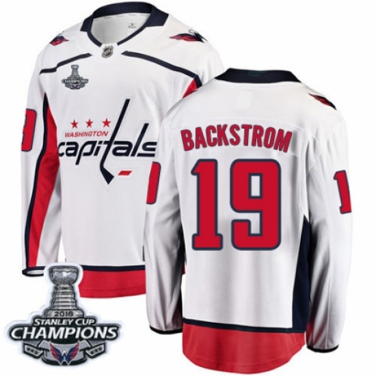 >Men's Washington Capitals #19 Nicklas Backstrom Fanatics Branded White Away Breakaway 2018 Stanley Cup Final Champions NHL Jersey
