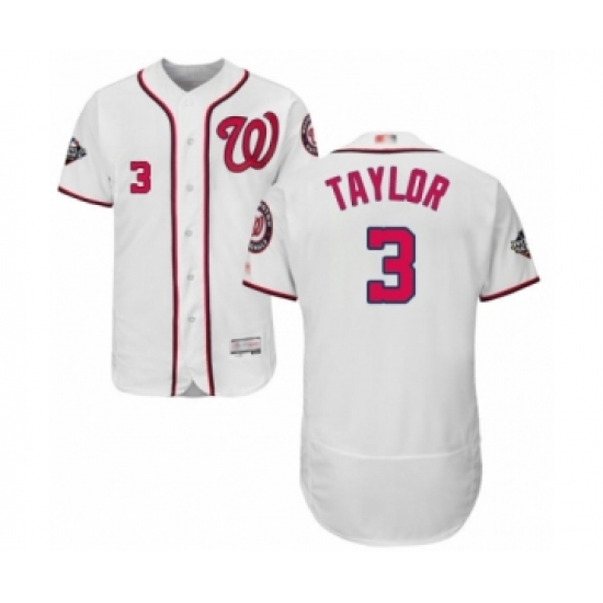 Men's Washington Nationals #3 Michael Taylor White Home Flex Base Authentic Collection 2019 World Series Bound Baseball Jersey
