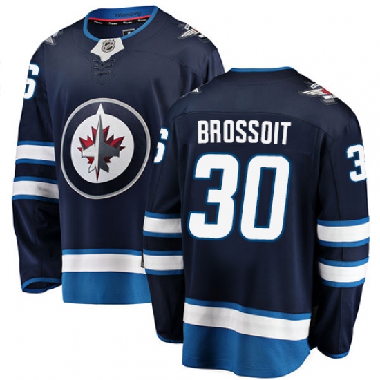 >Men's Winnipeg Jets #30 Laurent Brossoit Fanatics Branded Navy Blue Home Breakaway NHL Jersey